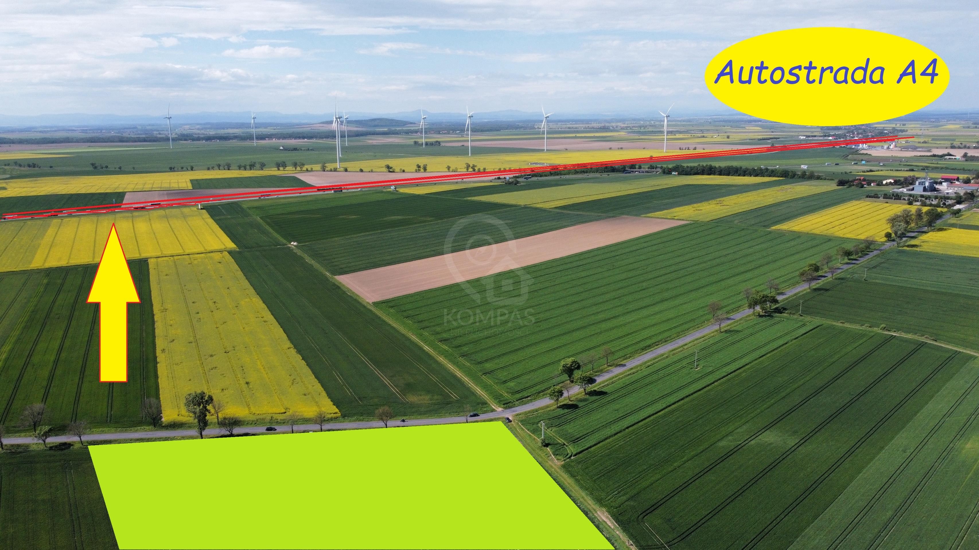 Na sprzedaż działka rolna 7,22ha w Gminie Kostomłoty koło Wrocławia z możliwością użytkowania pod aktywność gospodarczą.