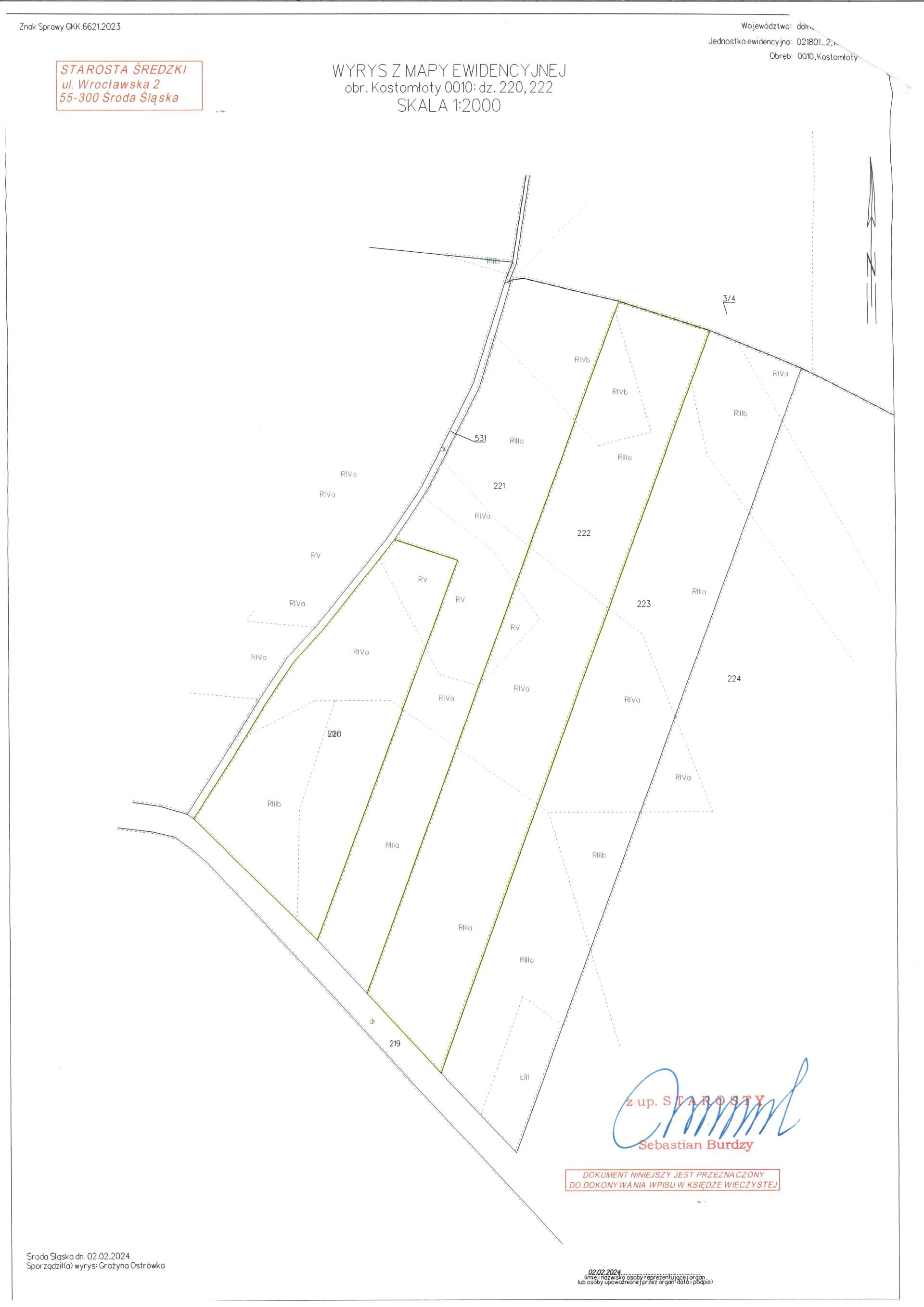 Łącznie 7,22ha z dostępem do drogi nr 5 łączącej Kostomłoty i Piotrowice. Obecnie działka jest użytkowana jako rolna i posiada grunty klasy III, IV i V.