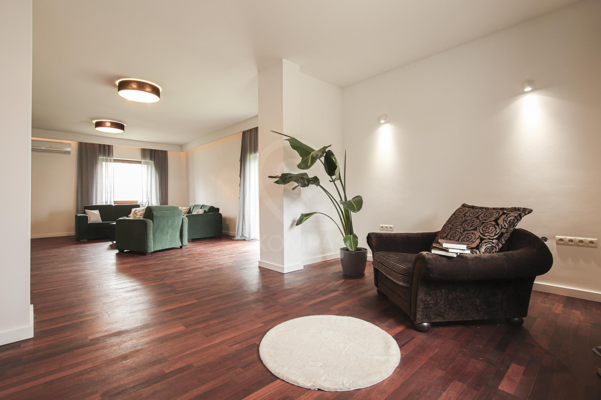 - "Niezniszczalne" podłogi - w salonie egzotyczne drewno, które dodaje elegancji i stylu, w pokojach wysokiej klasy ścieralności panele (AC4/AC5)