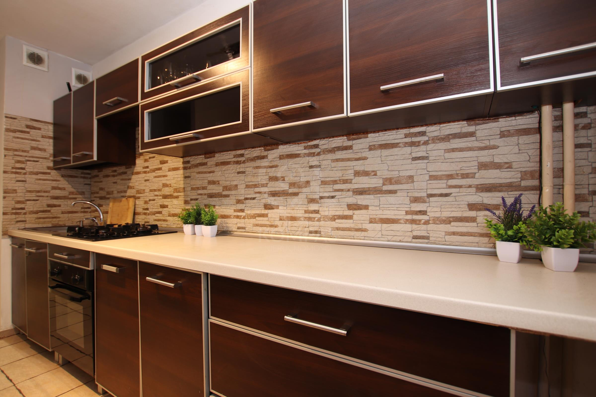 W pokojach na ścianach gładź, na podłodze panele, okna PCV, Kuchnia z meblami oraz sprzętem AGD (nowa lodówko-zamrażarka, piekarnik z płytą gazową, zmywarka). W przedpokoju dwie pojemne szafy w zabudowie.