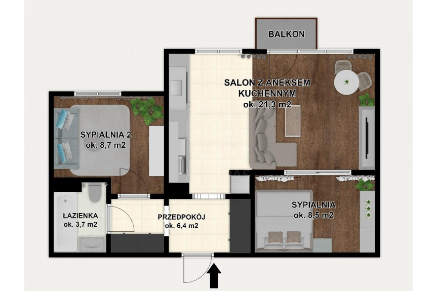 - sypialni ok. 8,5 m2