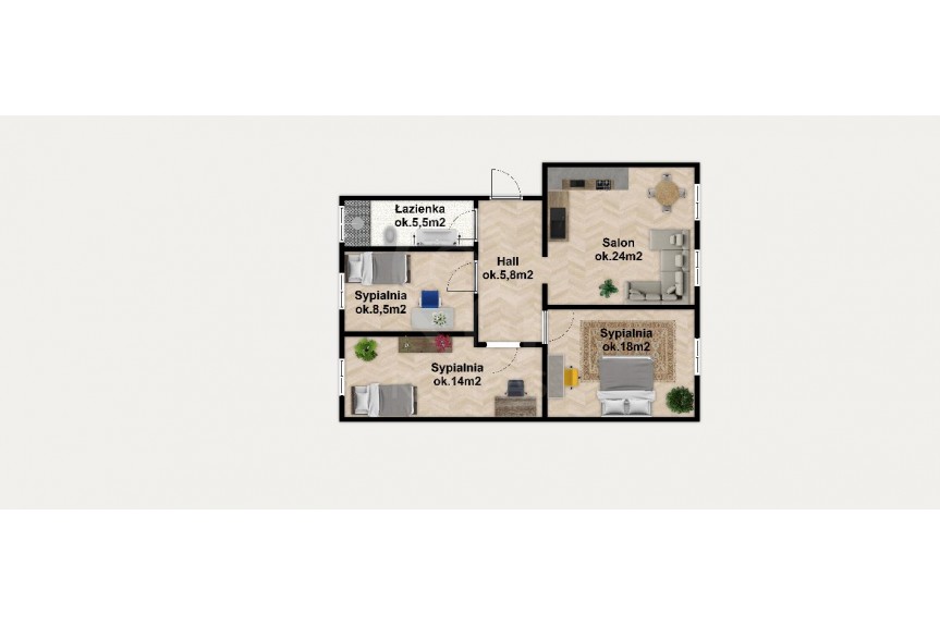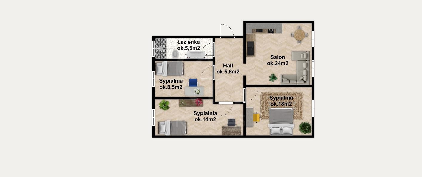 - przedpokoju ok. 5,8 m2